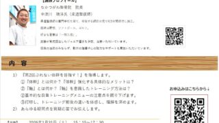 ●1月31日(土)「正しい身体の動かし方」&「用具の扱い方」勉強会 〜怪我しにくい身体をつくろう!〜 痛みを少しでも緩和...