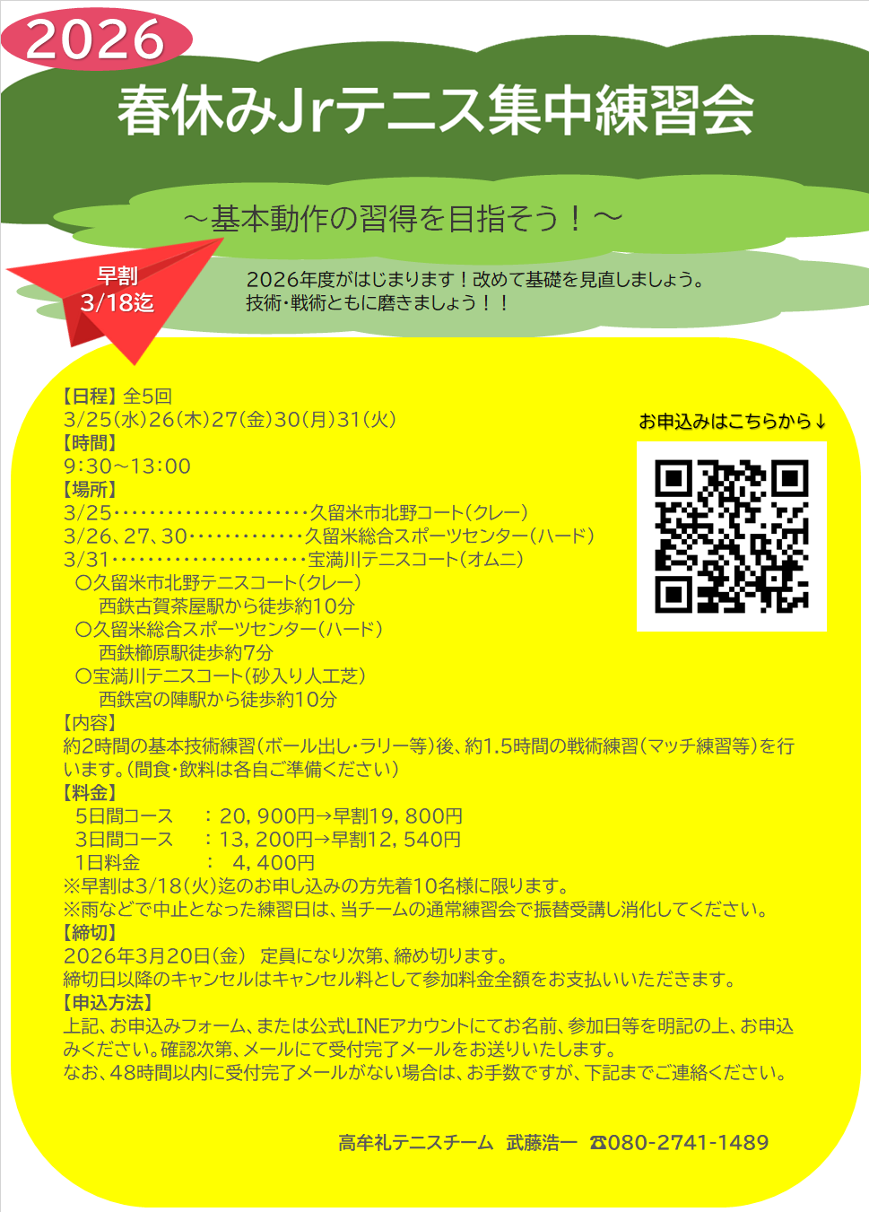 ●2026春休みジュニアテニス集中練習会